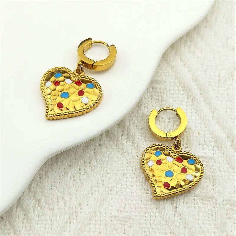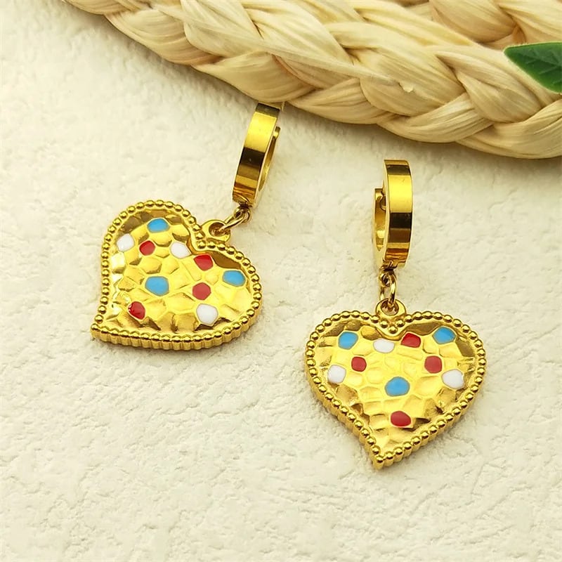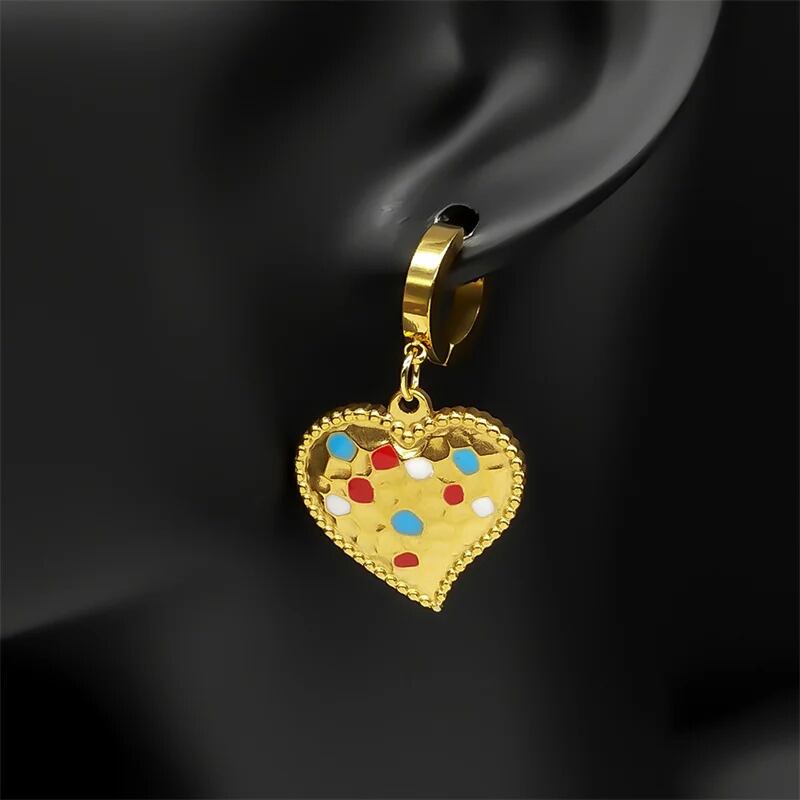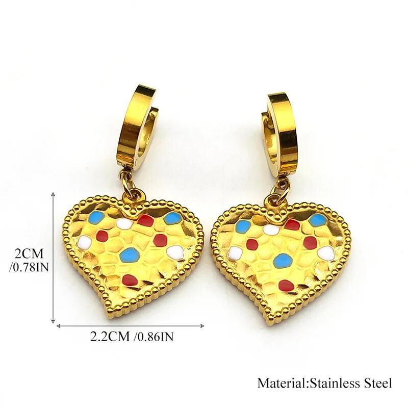 ビンテージ カラフル エナメル Love ハート フープ ピアス レディース メンズ ステンレス スチール ゴールド カラー ドロップ パーティ ジュエリー ギフト