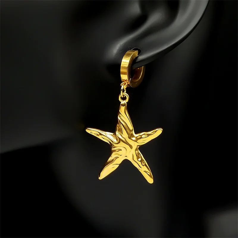 ステンレス スチール ヒトデ 動物 アニマル ゴールド カラー 大 フープ ピアス レディース スムーズ サーフェス 表面 ダングル 揺れる ファッション 夏 サマー バケーション パーティ ギフト