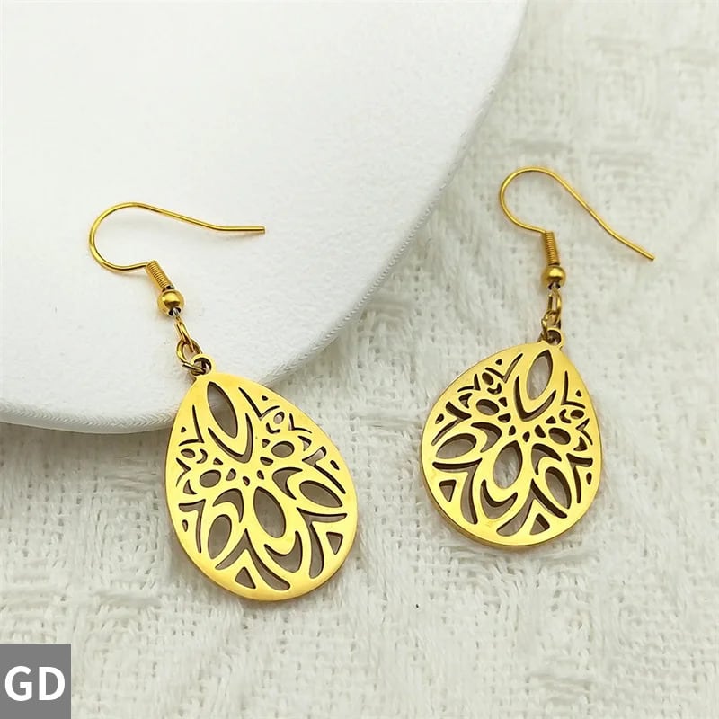 ビンテージ 花 フラワー ライフ ダングル 揺れる ピアス レディース メンズ ステンレス スチール ゴールド カラー オバール 透かし ドロップ ジュエリー パーティ ギフト