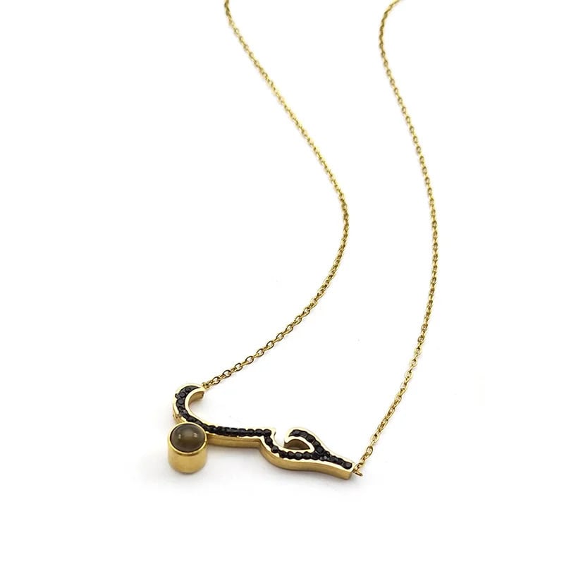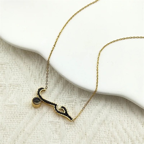 アラビア アラビック Love レター ラインストーン ペンダント ネックレス レディース ステンレス スチール ゴールド カラー 恋人 カップル チャーム ジュエリー ギフト