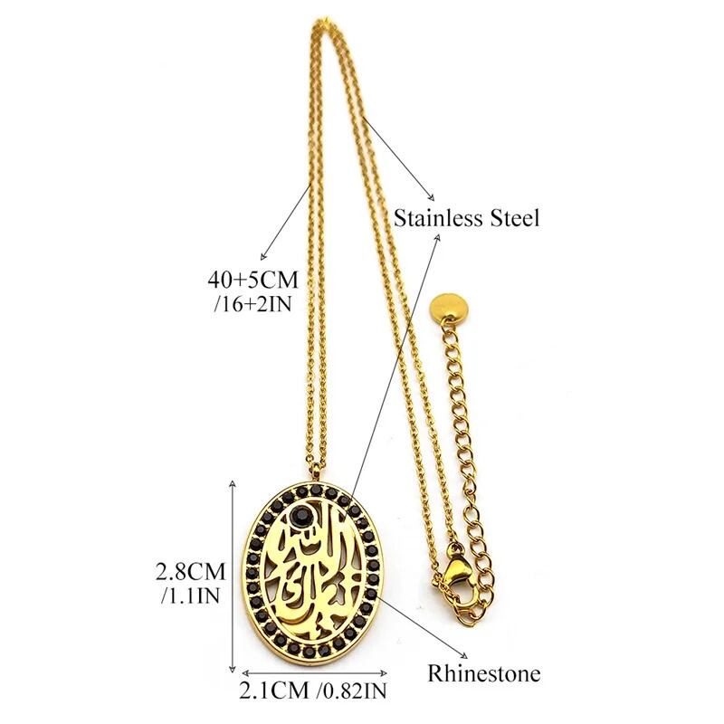 形状ネックレス:アラビア語ブラックラインストーンイスラム教コーランラインストーンペンダントネックレス