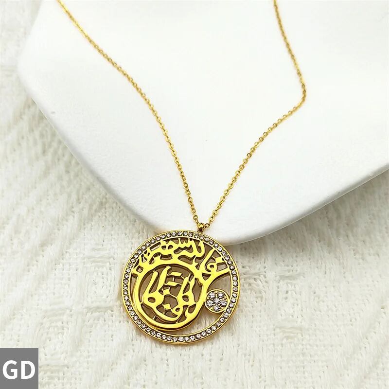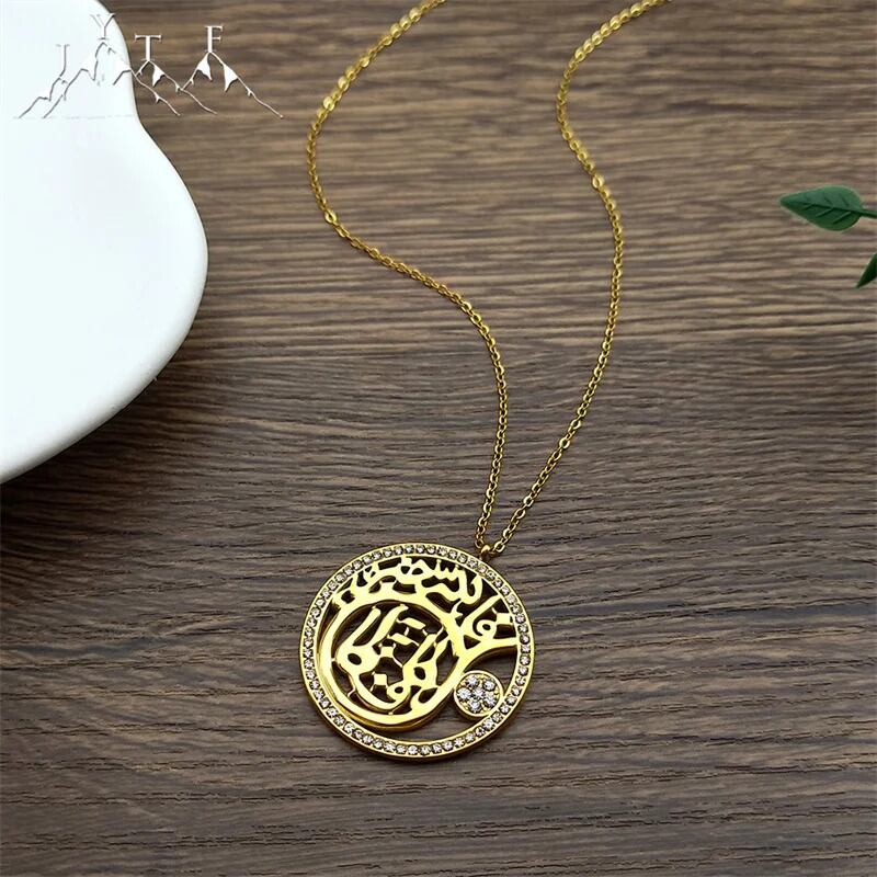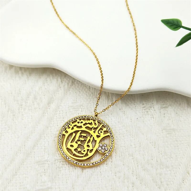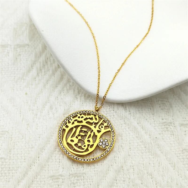 形状ネックレス:アラビア語ホワイトラインストーンイスラム教コーランラインストーンペンダントネックレス