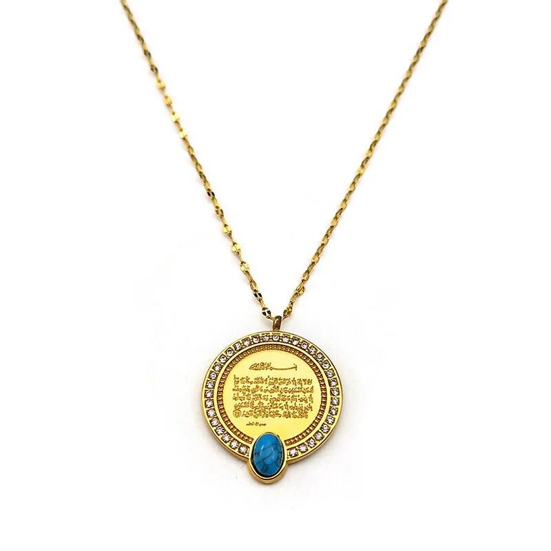 イスラム アラー コーラン ジルコン ジルコニア ターコイズ ペンダント ネックレス メンズ レディース ステンレス スチール ゴールド カラー ラマダン お守り ジュエリー