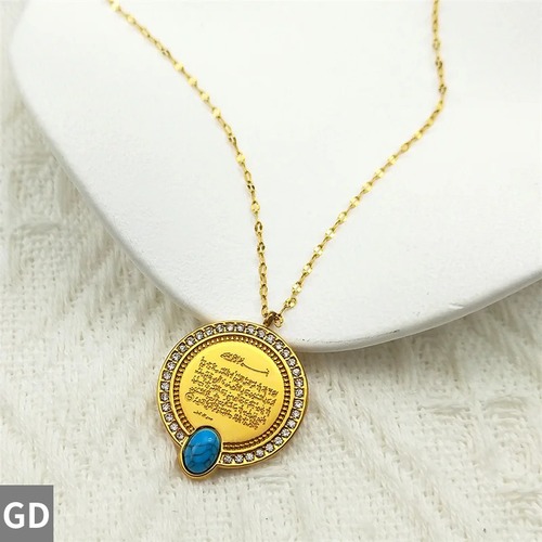 ペンダント ネックレス ジルコニア ステンレス ゴールド レディース メンズ イスラム アラー コーラン ジルコン ターコイズ