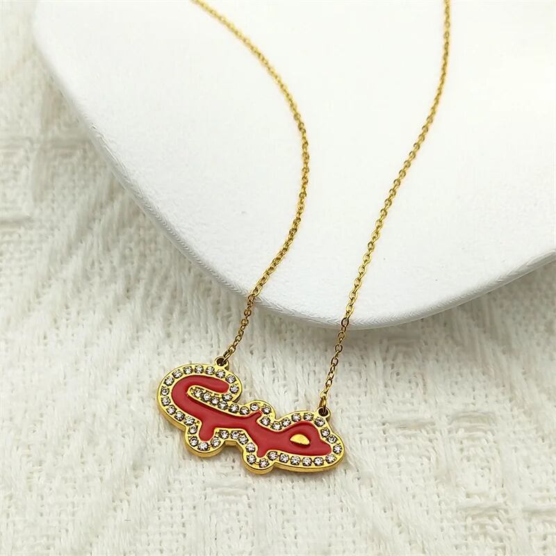 アラビア アラビック Love レター ペンダント ネックレス ジルコン ジルコニア レディース ギフト ステンレス スチール ゴールド カラー 赤 レッド エナメル チャーム ジュエリー