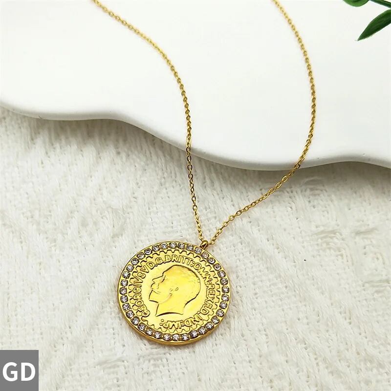 1937 英国 イギリス キング ジョージ VI ヘッド コイン ネックレス レディース メンズ ゴールド カラー ラインストーン ステンレス スチール ジュエリー