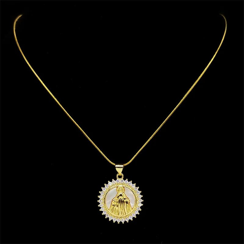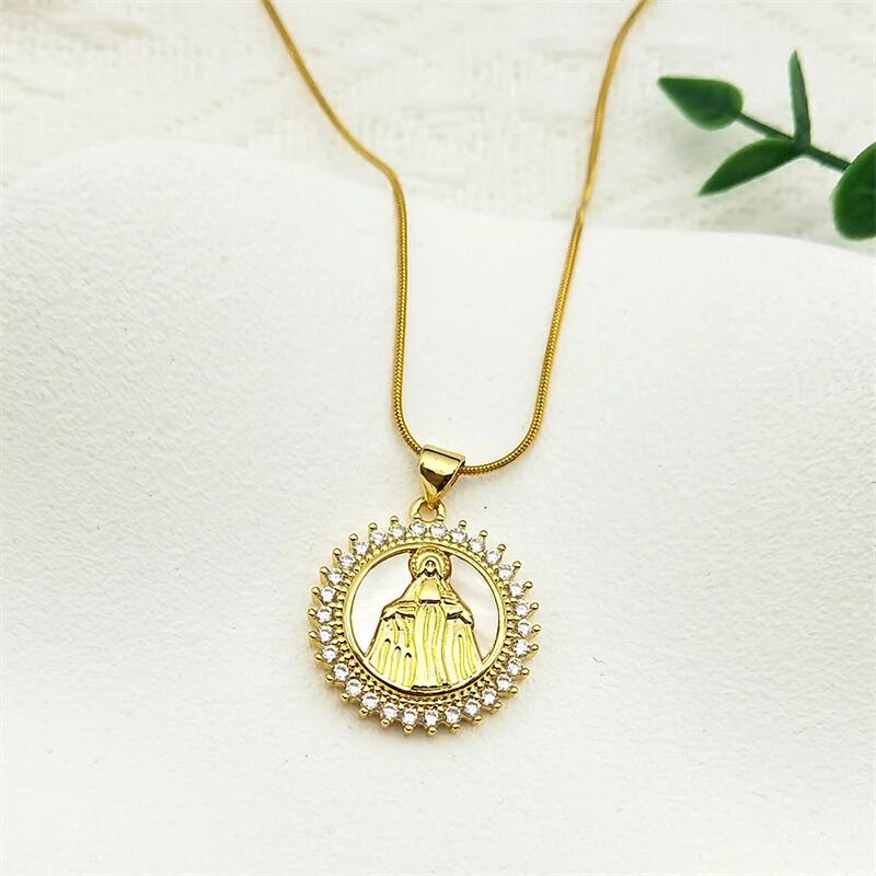 ペンダントネックレス:ジルコン聖母マリアシェルゴールドカラークリスチャングアダルーペジュエリー