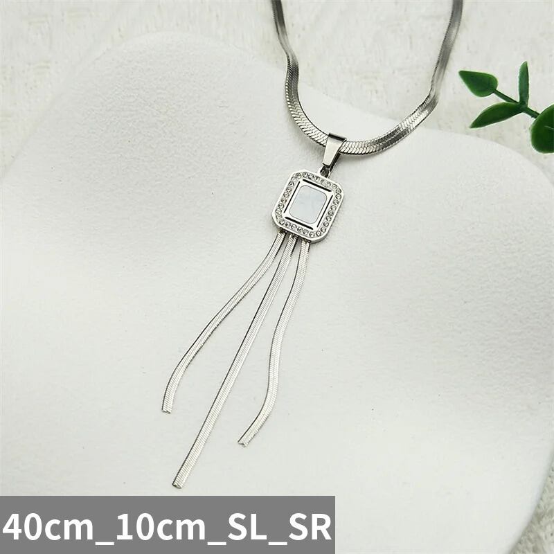 チャーム 四角 スクエア 形 シェープ ラインストーン ロング タッセル ネックレス レディース ガール ステンレス スチール ゴールド カラー パーティ 結婚式 ウェディング チェーン ジュエリー