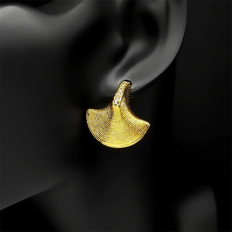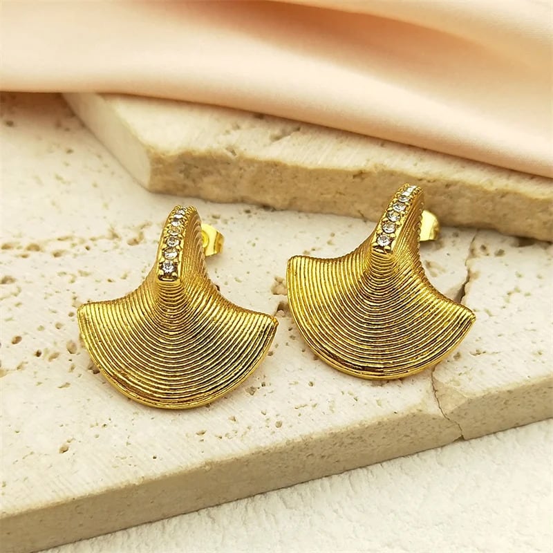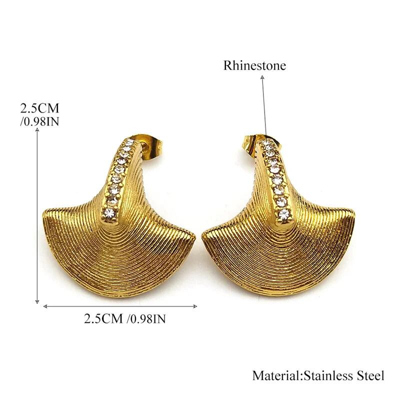 ファン型 扇型 シェル 貝殻 ラインストーン ステンレス スチール ピアス レディース ガール ゴールド カラー フランス スタイル チャーム スタッド ジュエリー ギフト