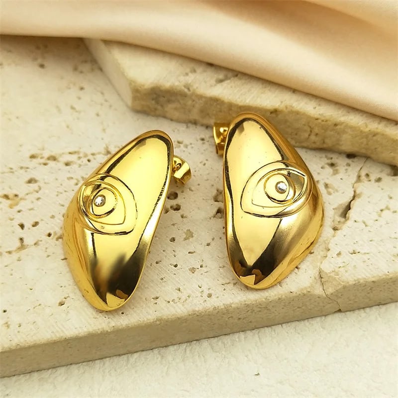 ステンレス スチール 悪 エビル 青 ブルー 目 アイズ クリスタル ピアス レディース ガール ゴールド カラー トルコ ラッキー スタッド ジュエリー ギフト