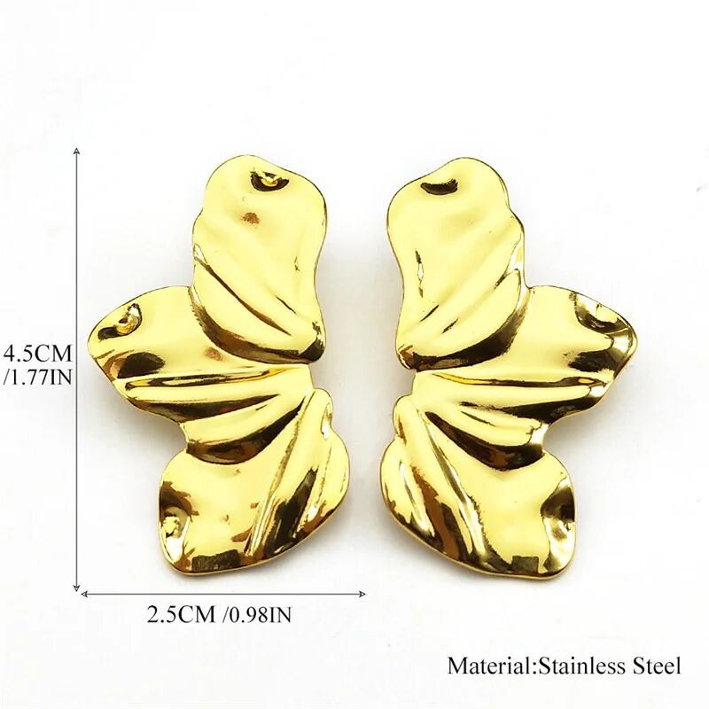 ファッション 蝶 バタフライ 昆虫 インセクト 花 フラワー ステンレス スチール ピアス レディース ガール ゴールド カラー 結婚式 ウェディング パーティ 耳 イヤー スタッド ジュエリー ギフト