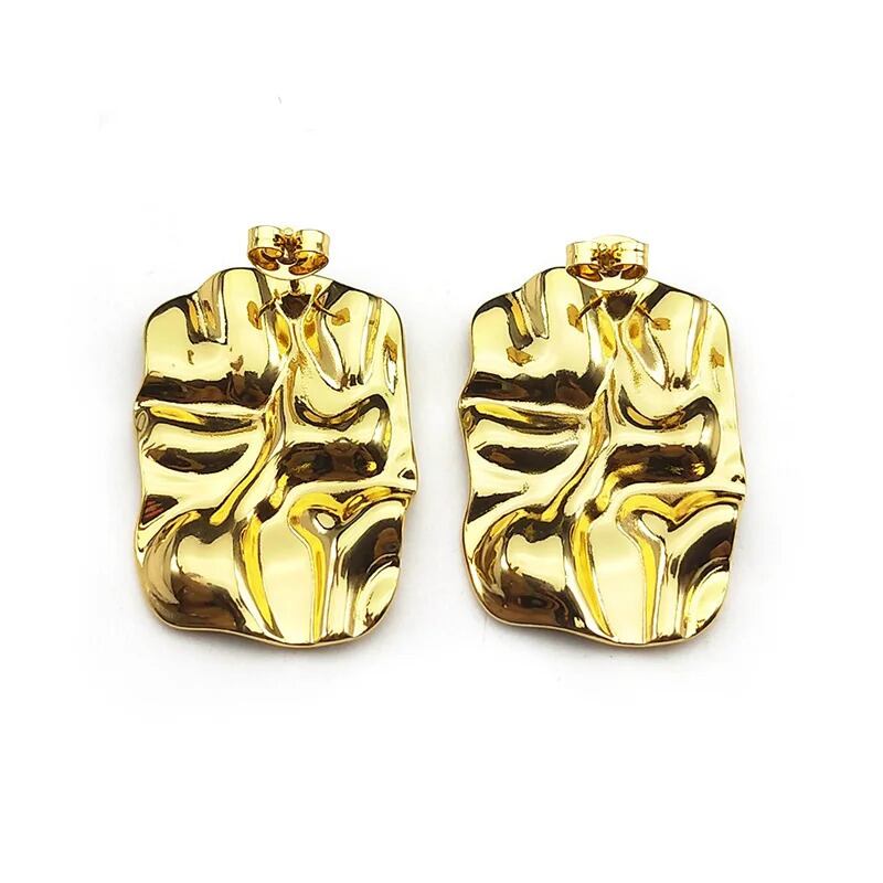 テクスチャ フランス スタイル ピアス レディース ガール ステンレス スチール ゴールド カラー パーティ 結婚式 ウェディング 耳 イヤー スタッド ジュエリー ペンダント