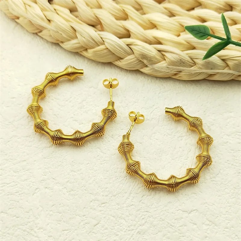 2024 トレンド サークル オープン ピアス レディース ガール ステンレス スチール ゴールド カラー チャーム スタッド ジュエリー