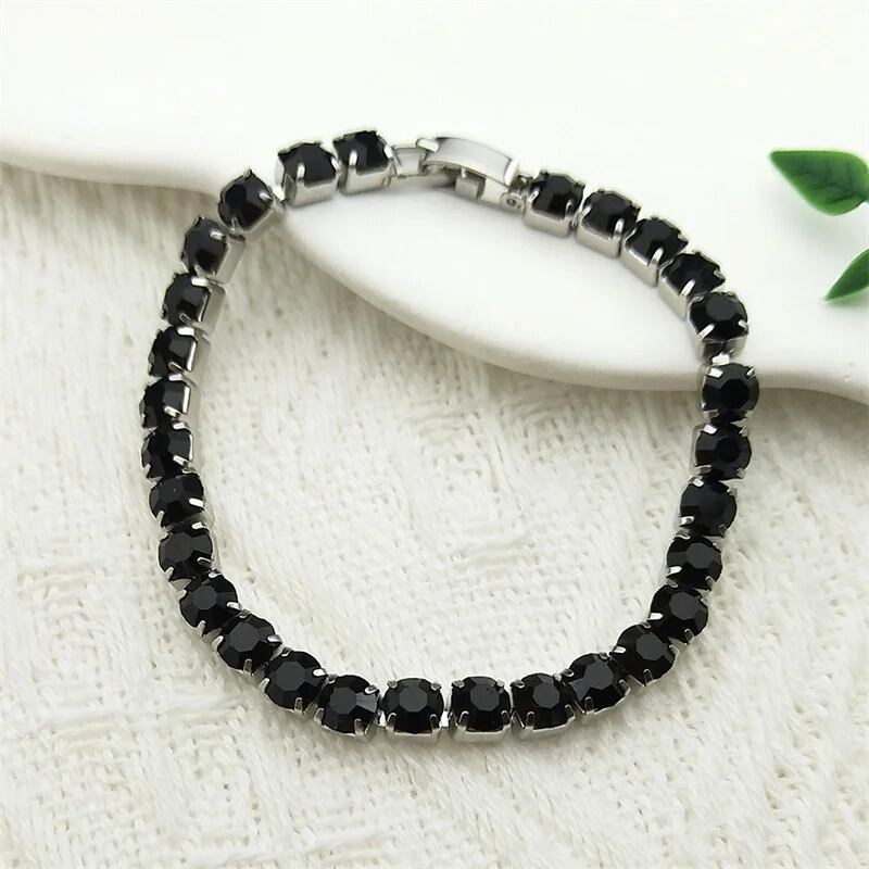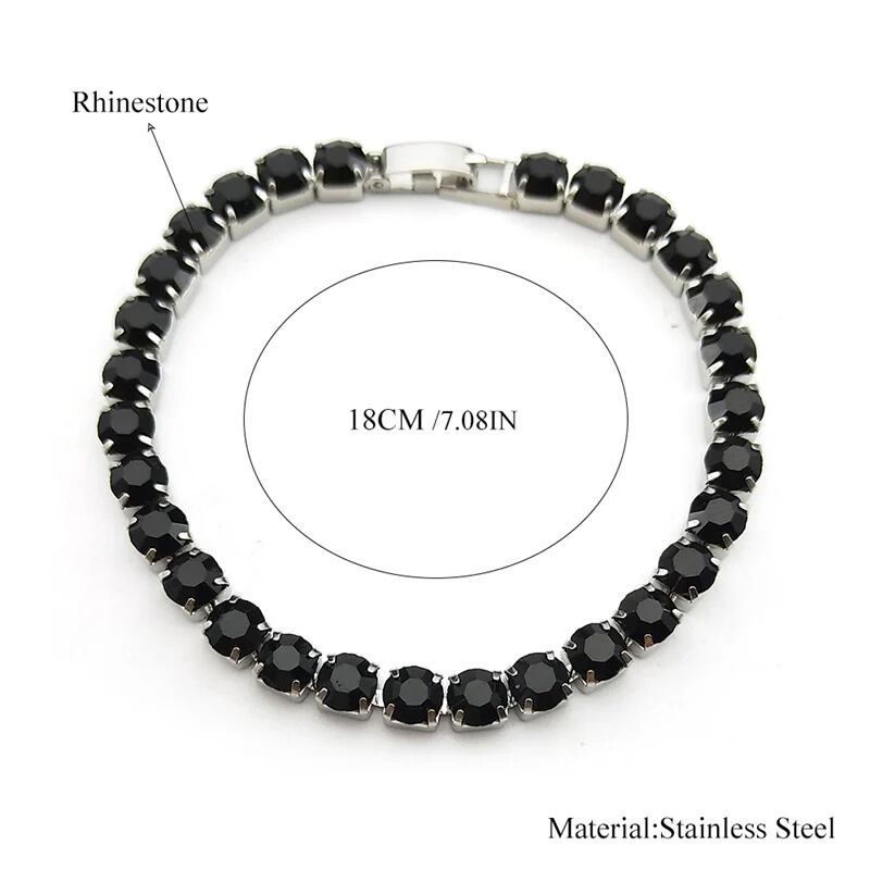 黒 ブラック 四角 スクエア ラインストーン ブレスレット レディース ガール ステンレス スチール シルバー カラー 幾何学 バンケット パーティ ハンド チェーン ジュエリー