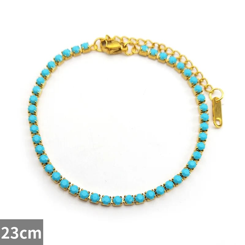 04 トレンド 青 ブルー 長方形 四角 スクエア ラインストーン ブレスレット レディース ガール ステンレス スチール ゴールド カラー ファッション ハンド チェーン ジュエリー