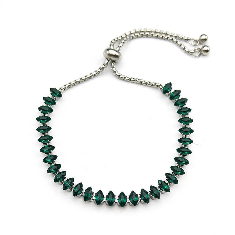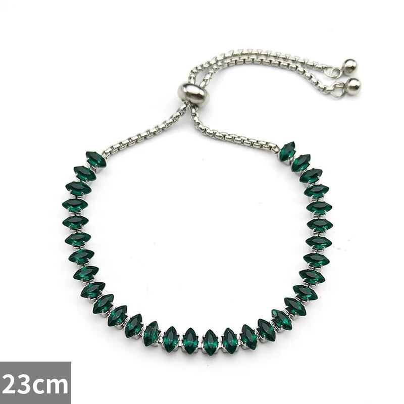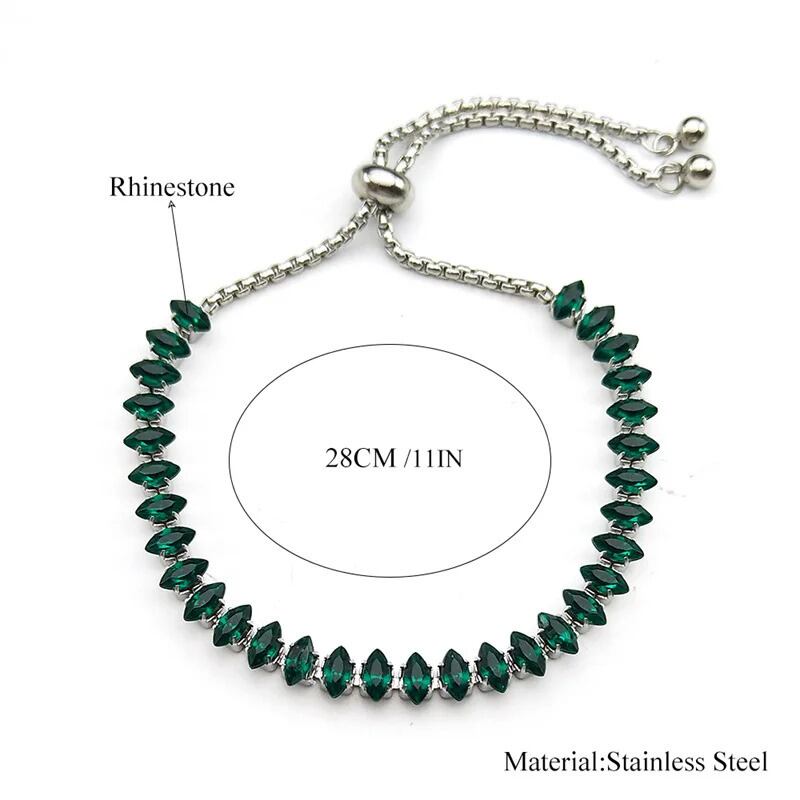 シンプル 緑 グリーン ラインストーン ブレスレット レディース ガール ステンレス スチール シルバー カラー クリア 透明 ハンド チェーン ジュエリー