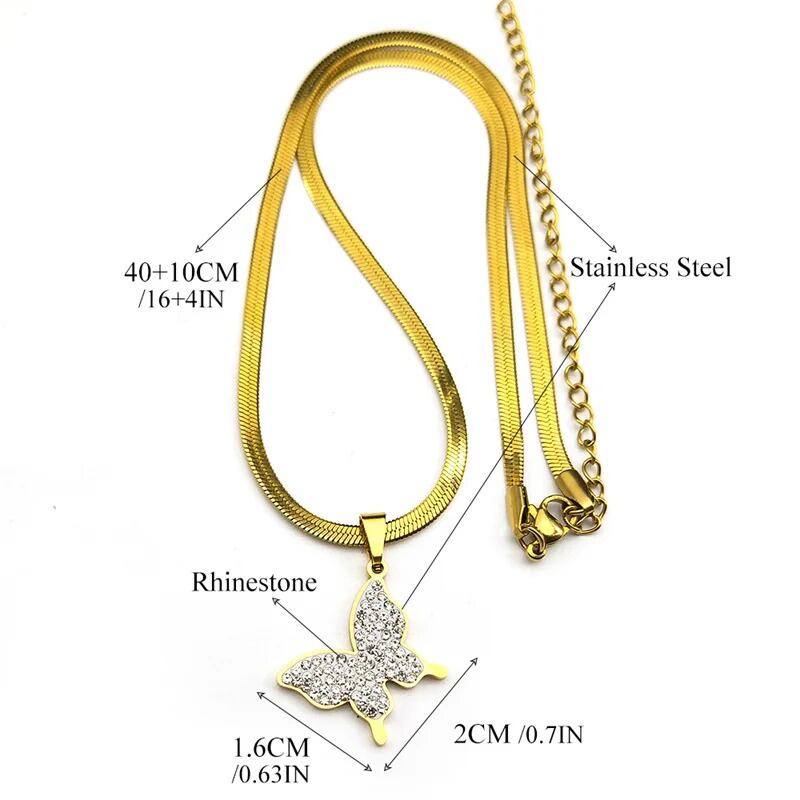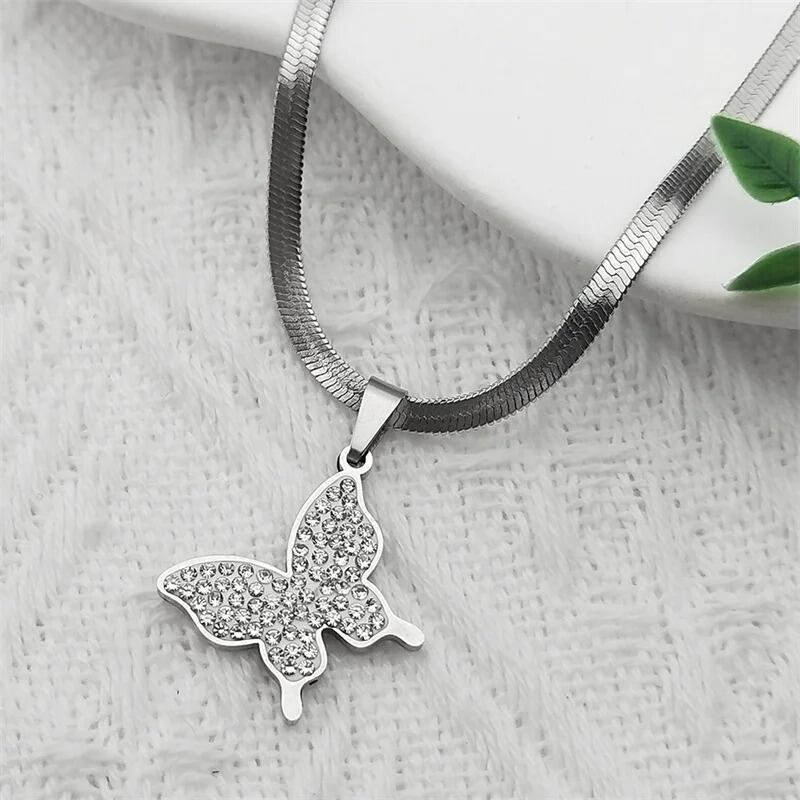 繊細 蝶 バタフライ 昆虫 インセクト クリスタル ペンダント ネックレス レディース ガール ステンレス スチール ゴールド シルバー カラー ファッション 蛇 スネイク ヘビ 動物 アニマル チェーン ジュエリー ギフト