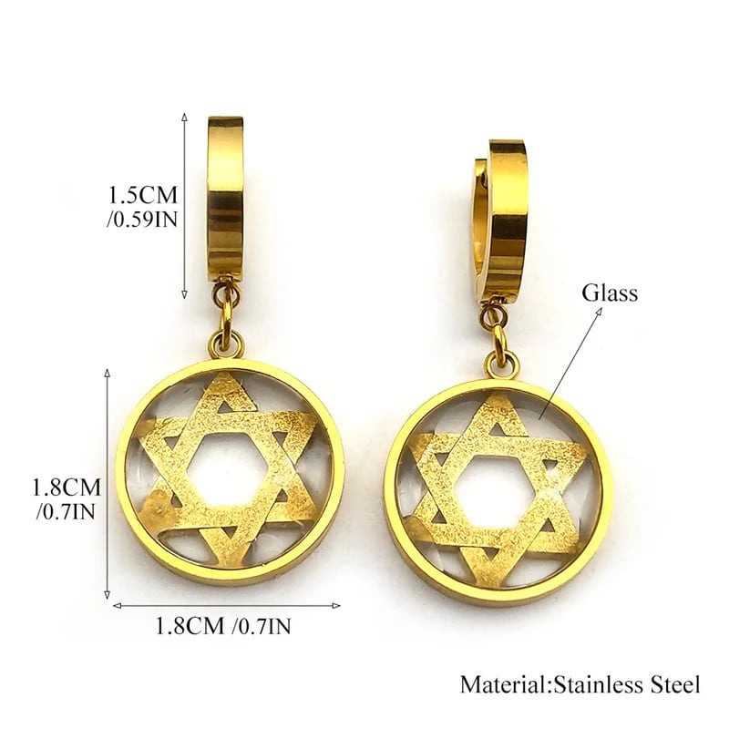 スター 星 デビッド シック ピアス  レディース ステンレス スチール ゴールド シルバー カラー ガラス イスラエル ヘキサグラム ペンダント ジュエリー ギフト