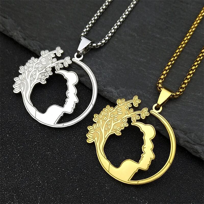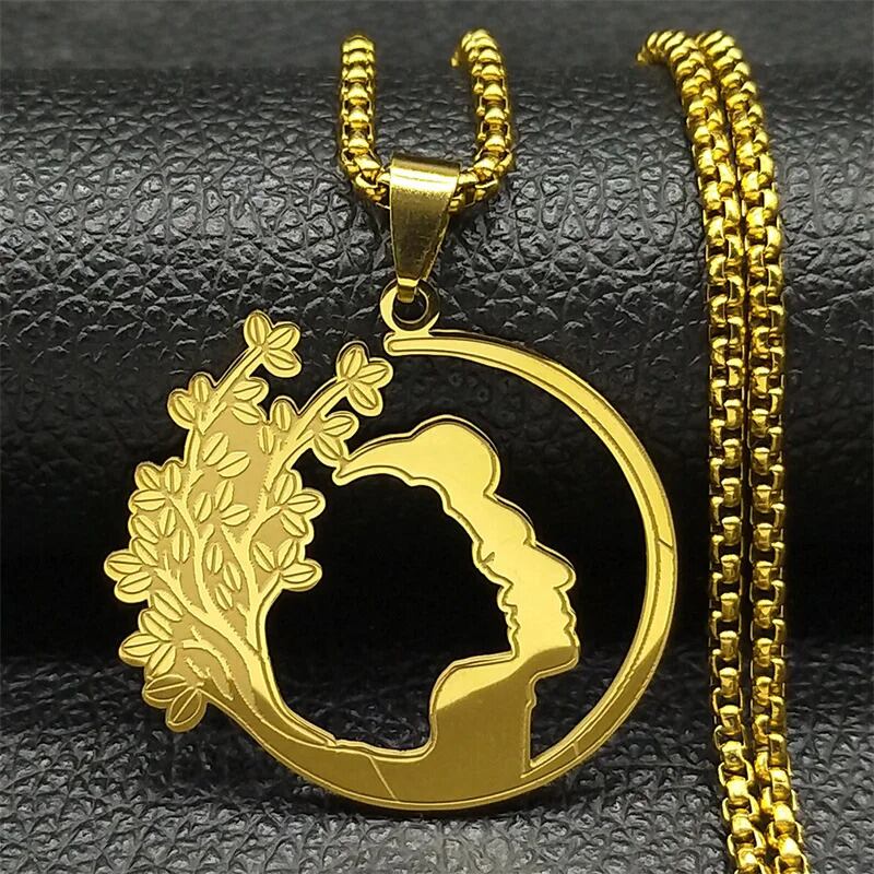 木 ツリー 木の葉 リーフ 植物 プラント ライフ ペンダント ネックレス レディース メンズ ステンレス スチール ゴールド カラー 透かし カップル ジュエリー 誕生日 ギフト