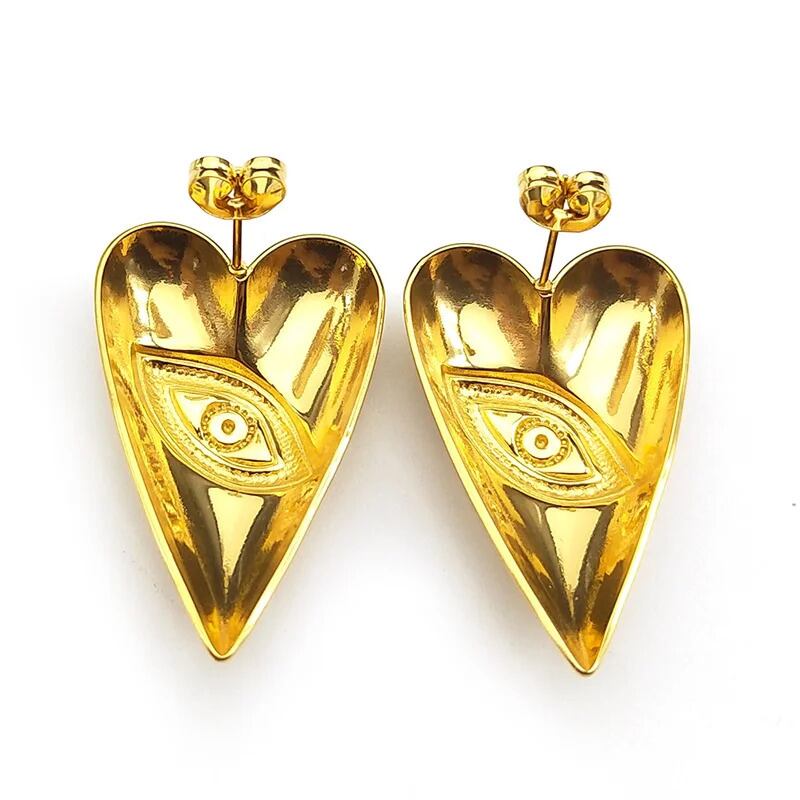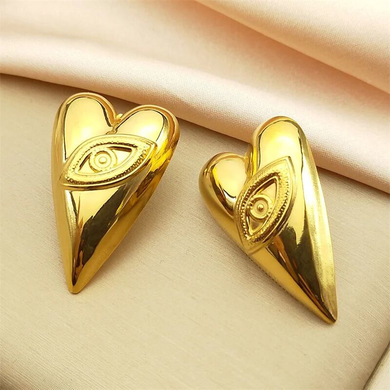 ステンレス スチール 悪 エビル 目 アイズ 分厚い ピアス レディース ガール ゴールド カラー トルコ ラッキー スタッド ジュエリー ギフト