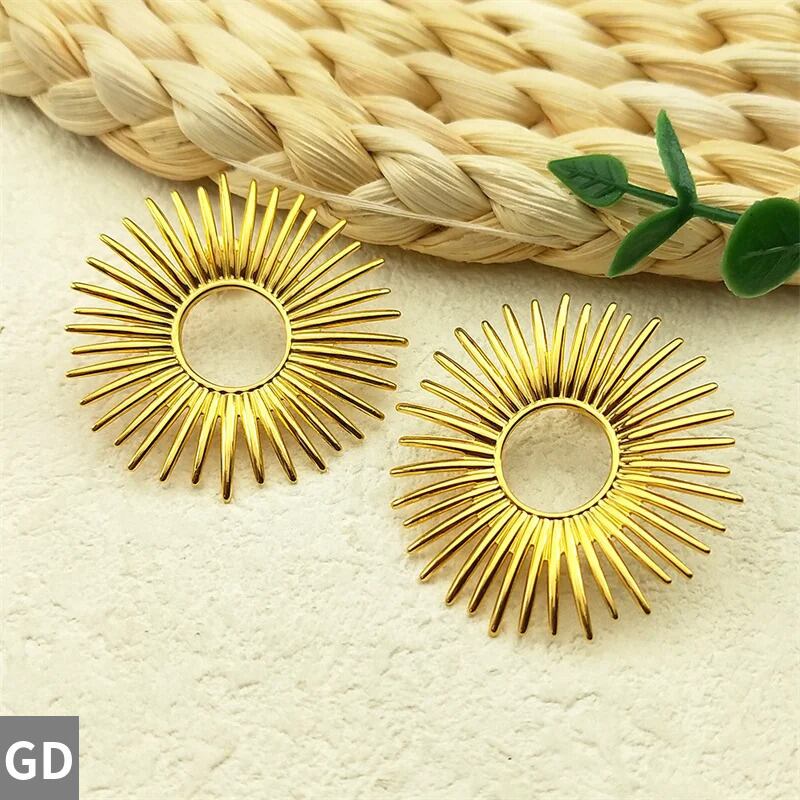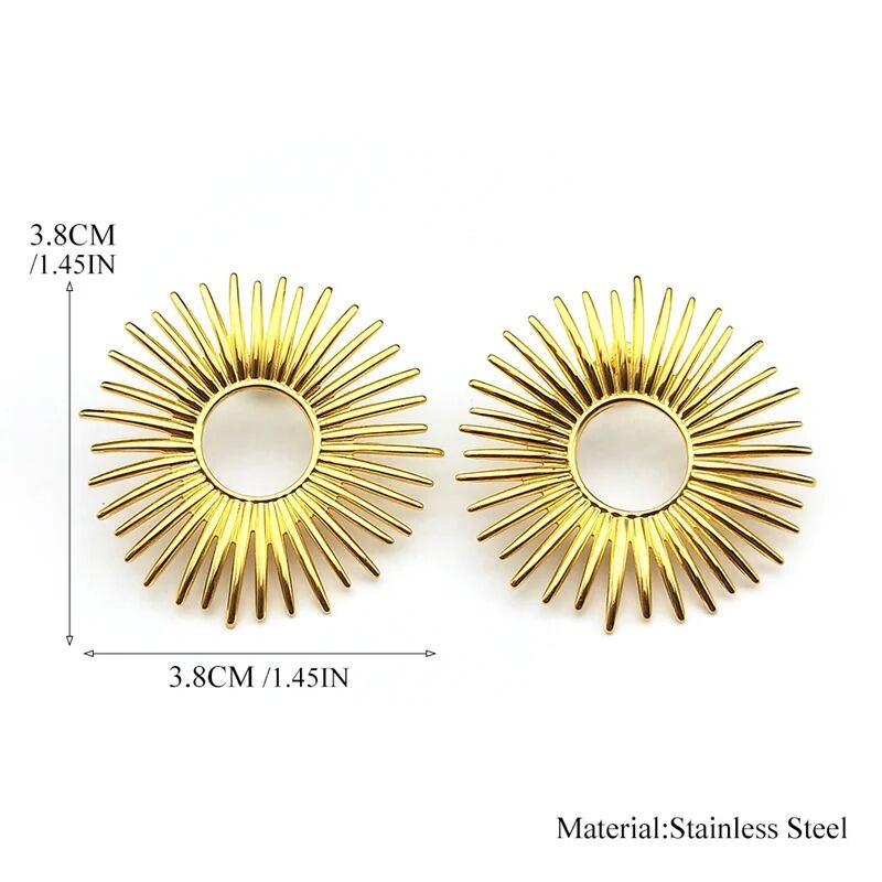 スタイル:ヴィンテージステンレススチールサンフラワーピアスゴールドプレートテクスチャステートメントフープピアスウェディングジュエリー