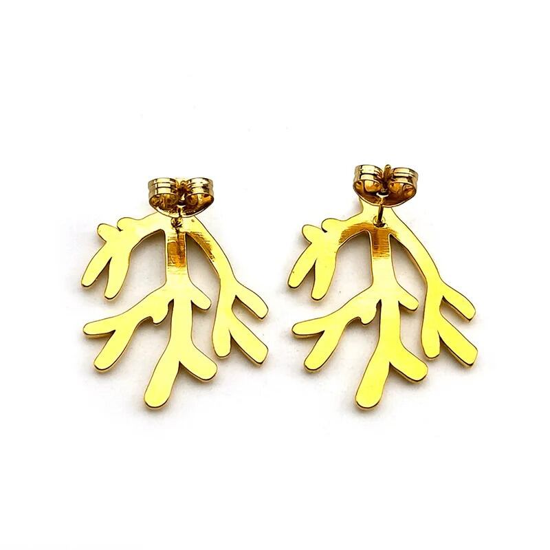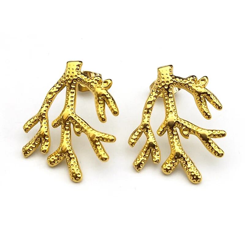 コーラル 木 ツリー 木の葉 リーフ 植物 プラント ライフ フープ ピアス レディース ガール ステンレス スチール ゴールド カラー スタッド 結婚式 ウェディング パーティ ジュエリー ギフト