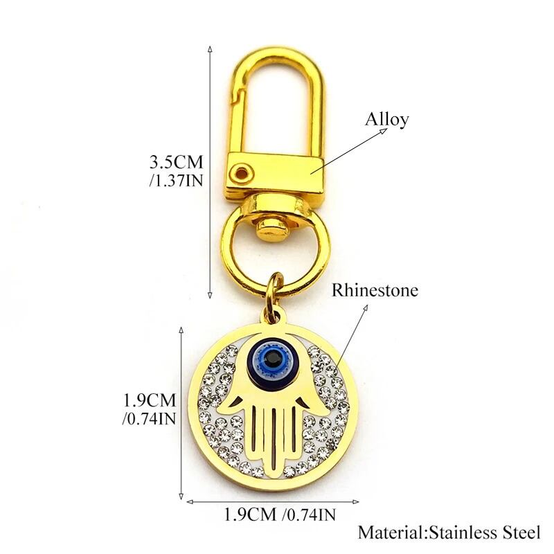 青 ブルー 悪 エビル 目 アイズ ハムサ ハンド 鍵 キー チェーン レディース メンズ ステンレス スチール ゴールド シルバー カラー ラインストーン リング 指輪 ラッキー ジュエリー ギフト