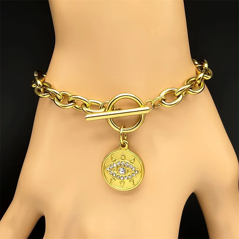 ペンダント ブレスレット ラインストーン クリスタル ステンレス ゴールド チェーン メタル レディース メンズ 悪 エビル 目 アイズ