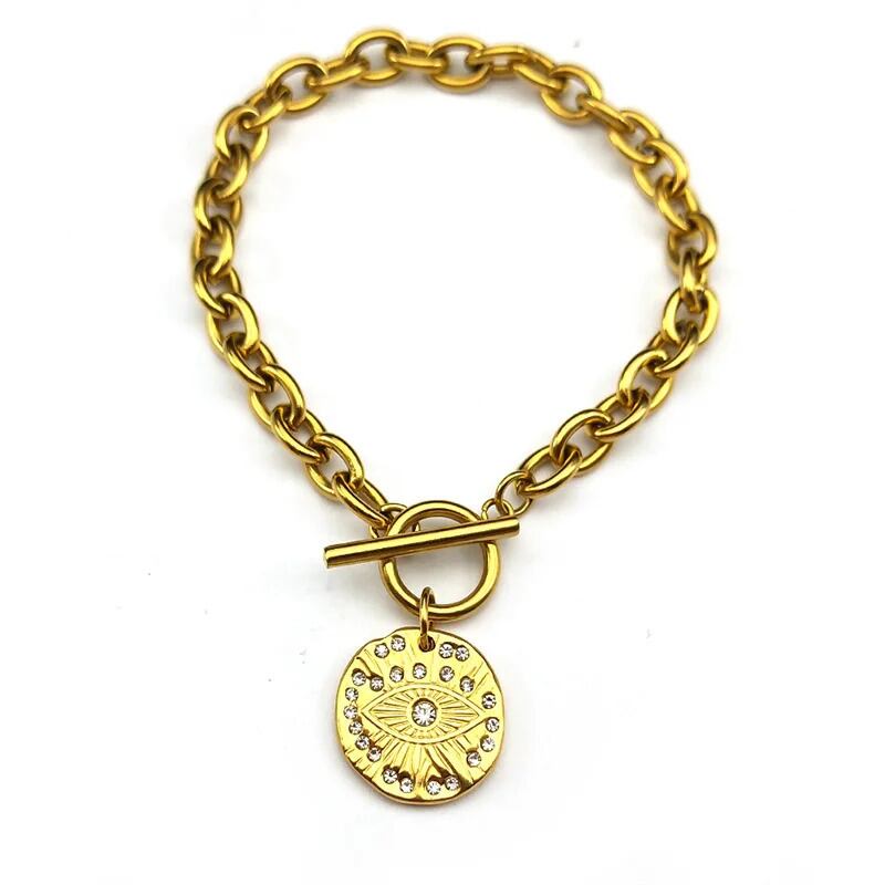 ファイン ファッション:クリスタルイービルアイズメダルブレスレット