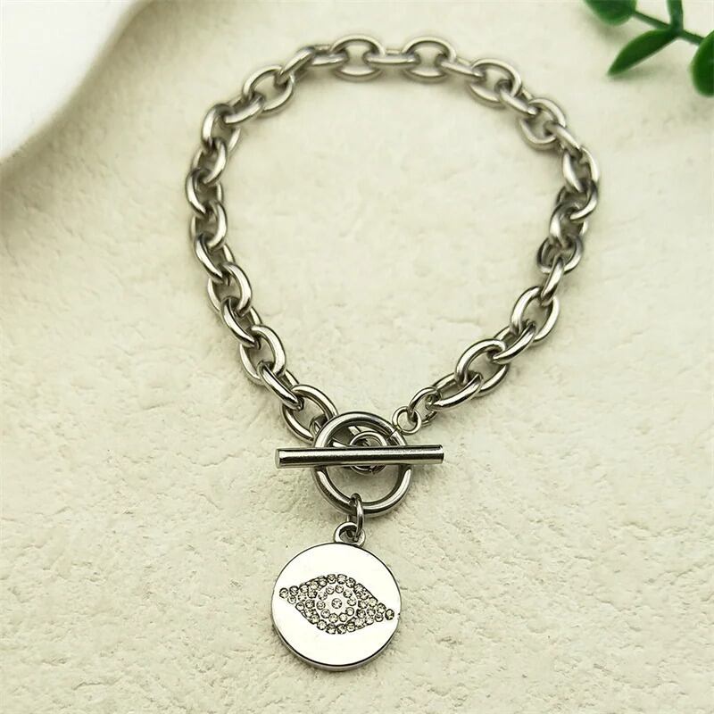 チャーム ペンダント ブレスレット ラインストーン クリスタル ステンレス ゴールド チェーン レディース メンズ 悪 エビル 目 アイズ