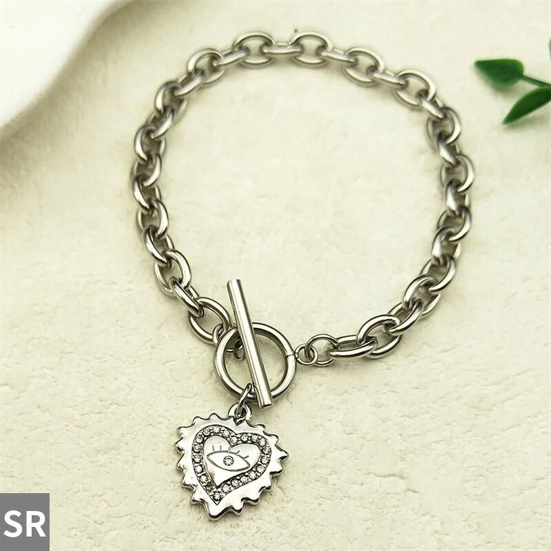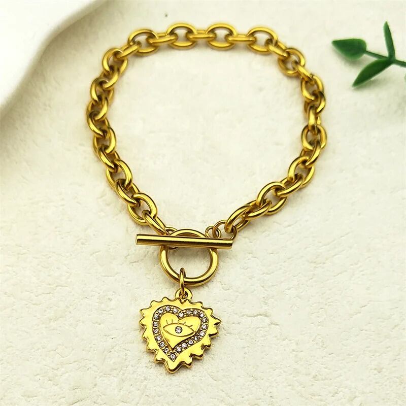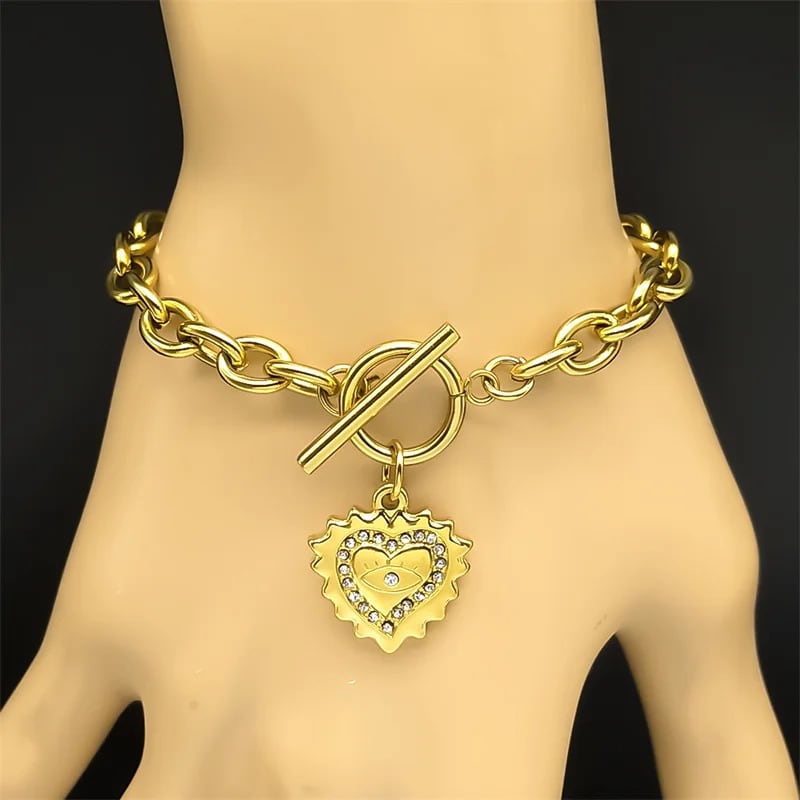 ラインストーン Love ハート ペンダント ブレスレット レディース メンズ ステンレス スチール バングル ゴールド カラー デビル 目 アイズ ハンド チェーン パーティ ジュエリー ギフト