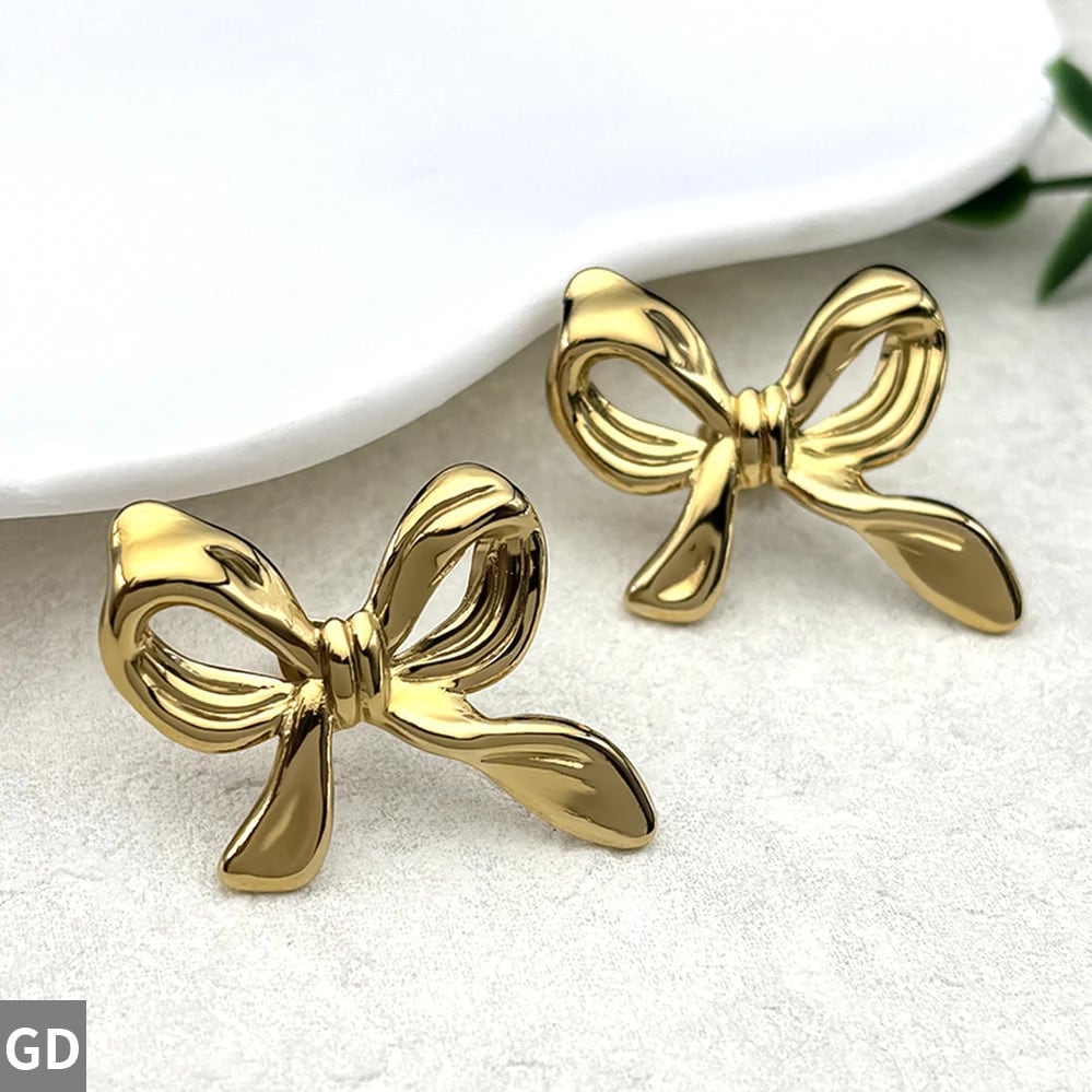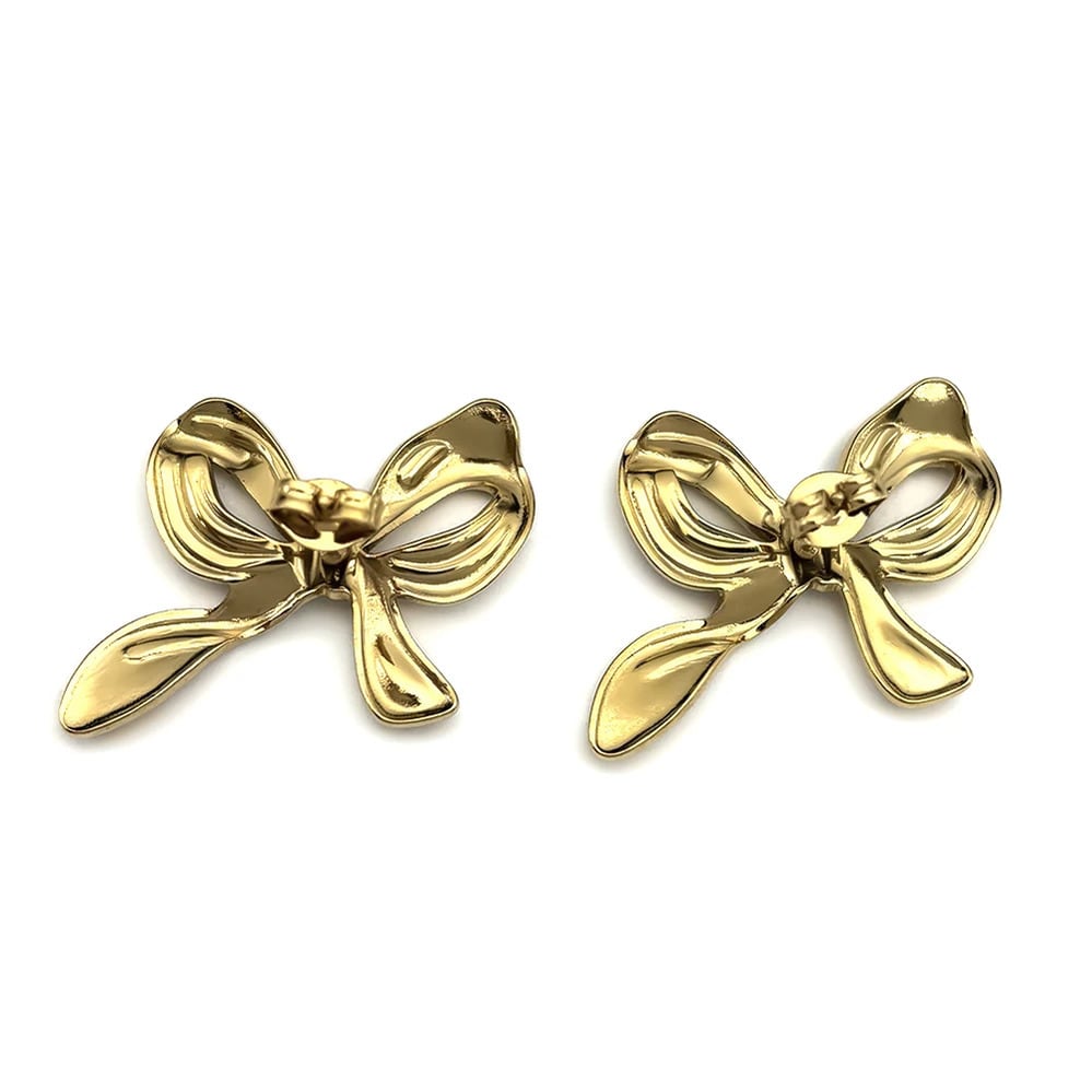 ステンレス スチール ゴールド カラー 弓 結び目 リボン スタッド ネイル ピアス レディース ガール ファッション かわいい ジュエリー 耳 イヤー アクセサリー パーティ ギフト