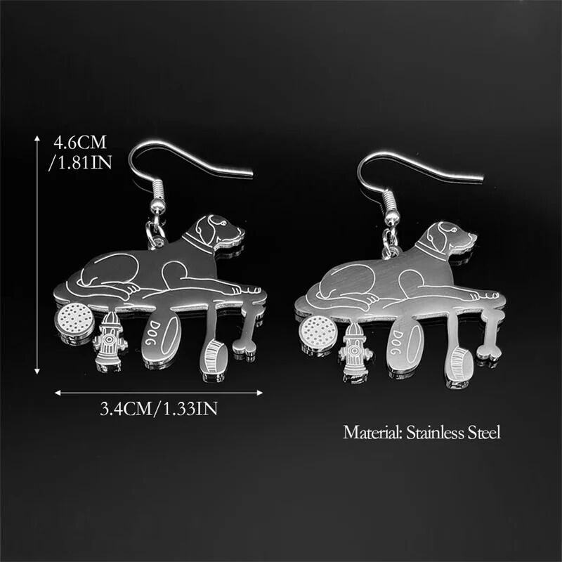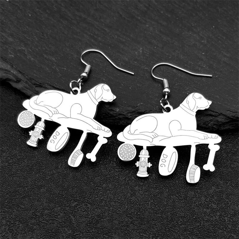 ファイン ファッション: ボヘミアステンレススチールのかわいい犬子犬の骨ペンダントピアス