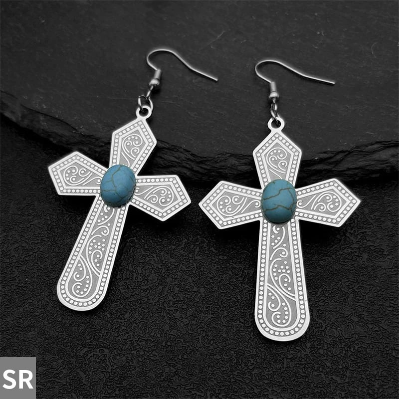 ファイン ファッション: イエス クロス ターコイズ ストーン ペンダント ピアス