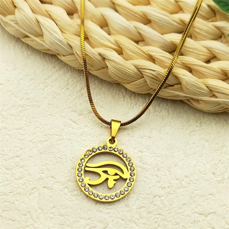 目 アイズ ホルス 悪 エビル ラインストーン ペンダント ネックレス  メンズ レディース ステンレス スチール 古代 エジプト 保護 プロテクション お守り パーティ ジュエリー