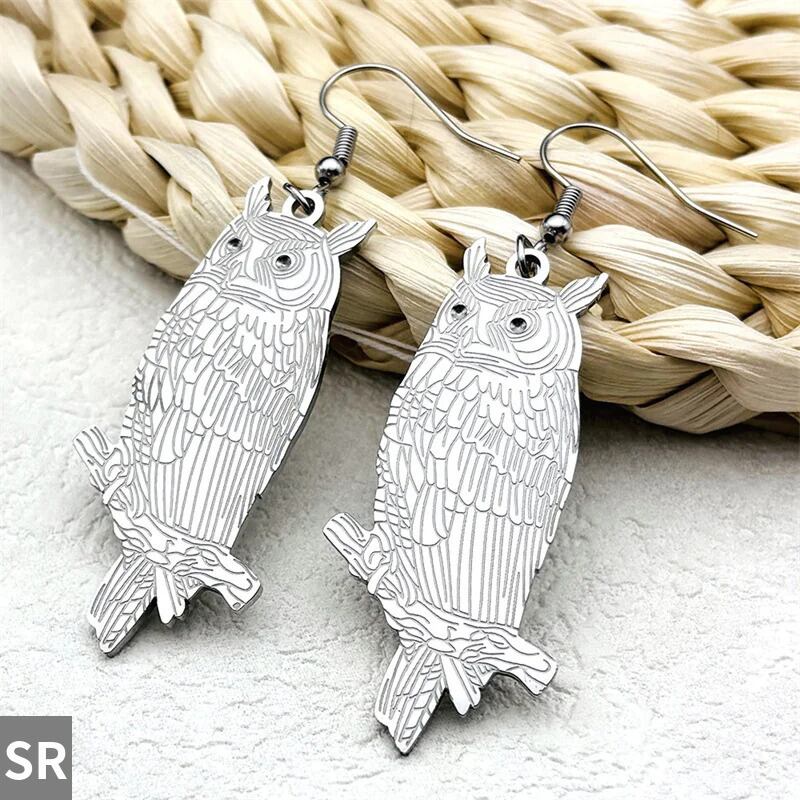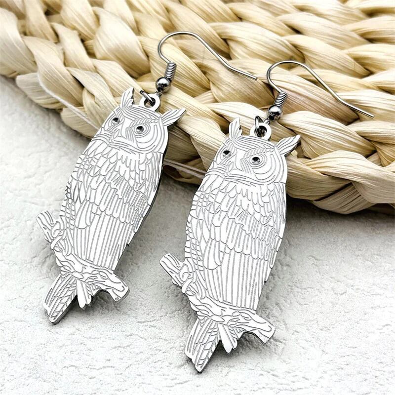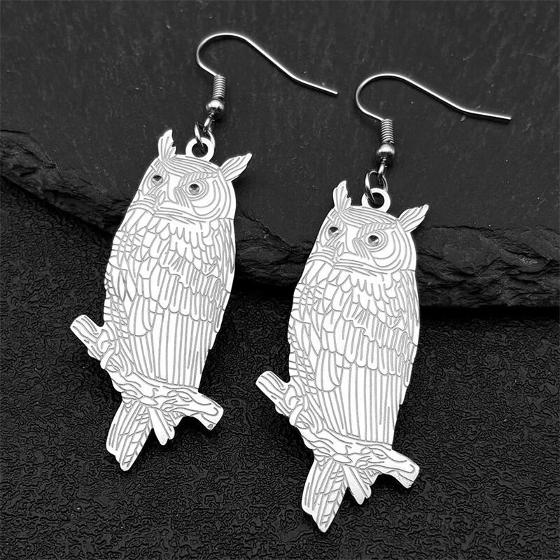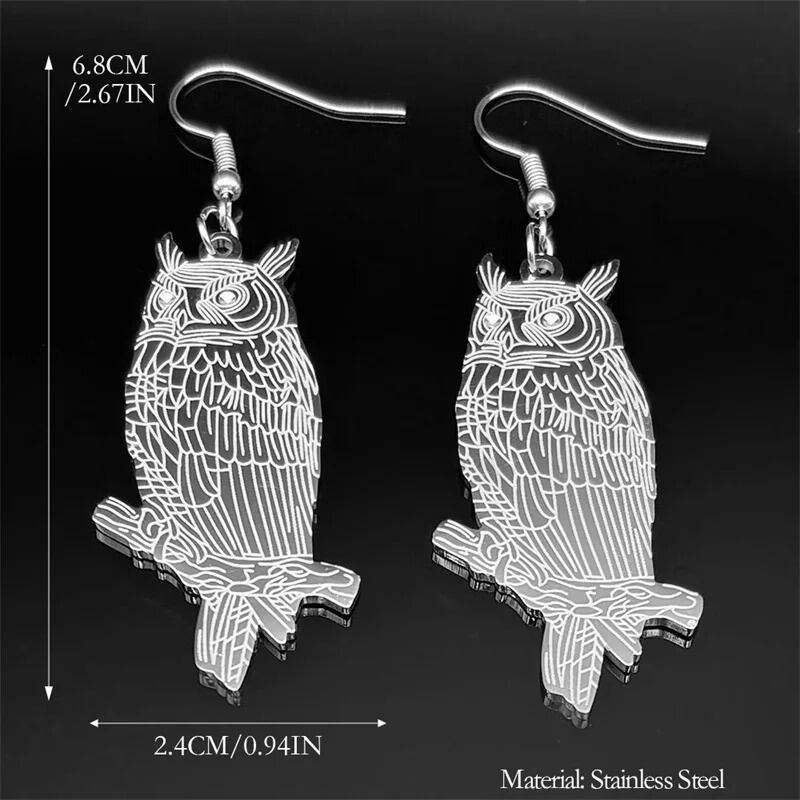 スタイル:ファッションアニマルフクロウステンレススチールロングピアス