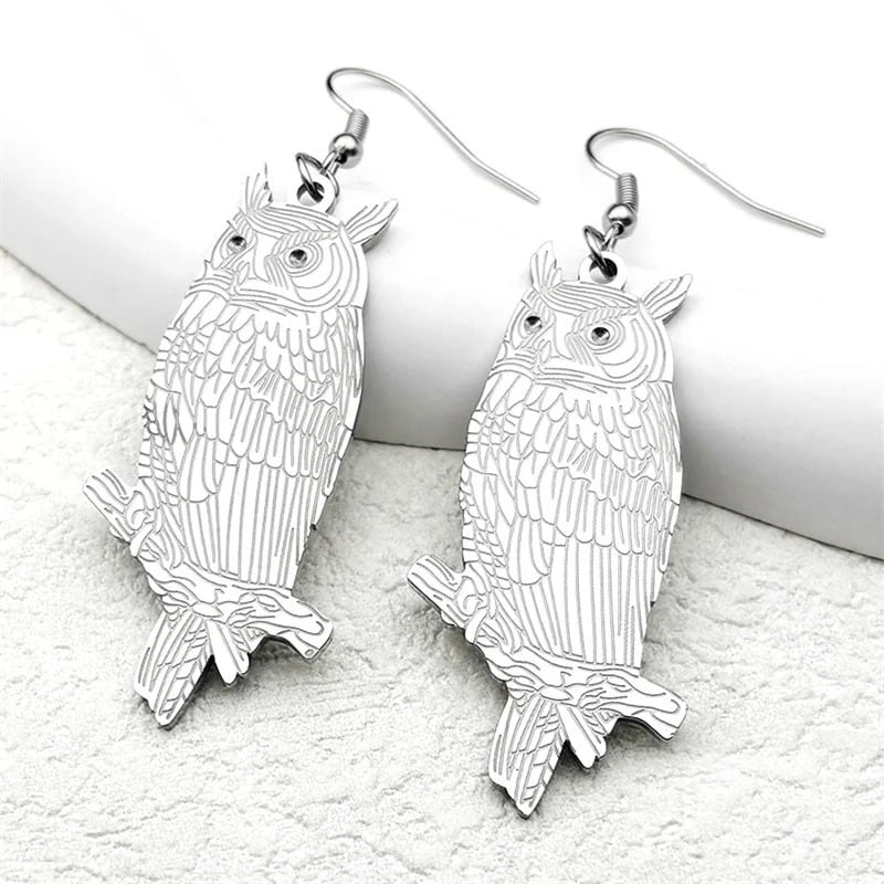 ファッション 動物 アニマル フクロウ 鳥 バード ステンレス スチール ロング ピアス メンズ レディース シルバー カラー フープ ジュエリー パーティ ギフト 2928-QKC