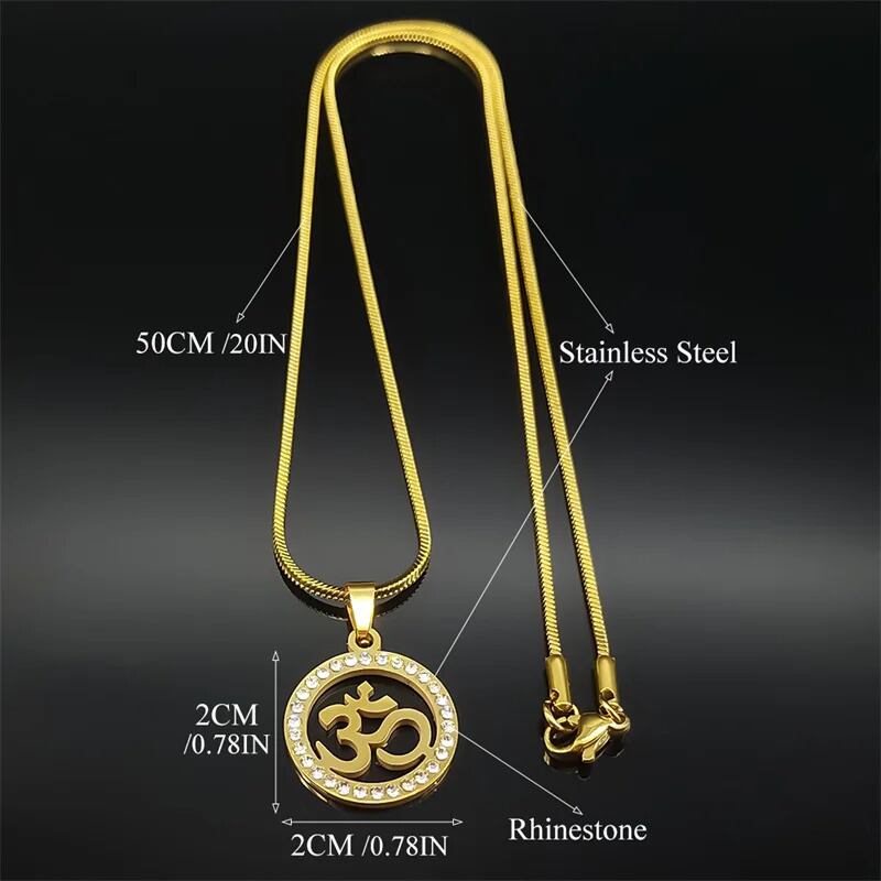 OM ラインストーン メダリオン ペンダント ネックレス レディース メンズ ステンレス スチール ゴールド シルバー カラー ヨガ お守り ジュエリー