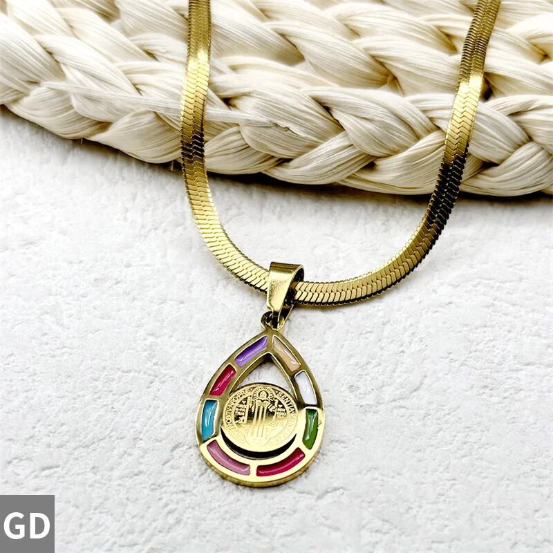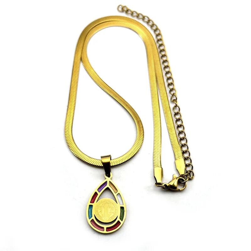 オバール エナメル 聖人 ベネディクト ペンダント ネックレス レディース メンズ ステンレス スチール 蛇 スネイク ヘビ 動物 アニマル チェーン チョーカー ジュエリー ベニート