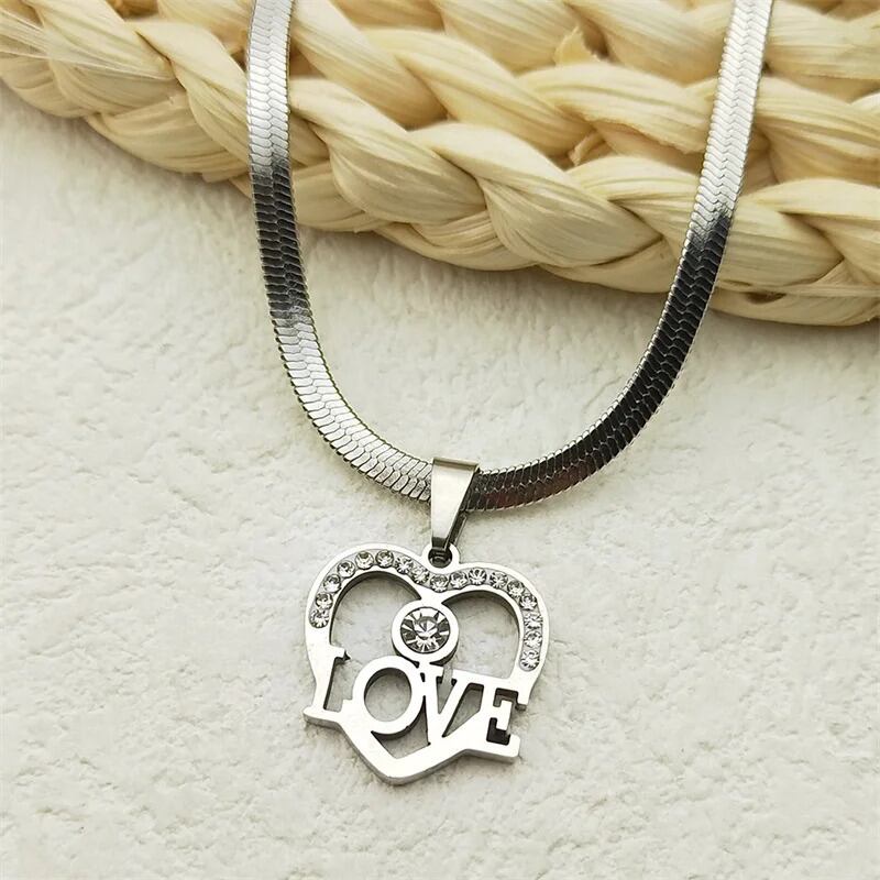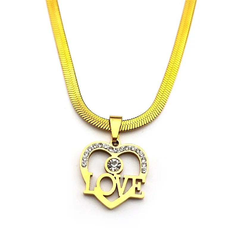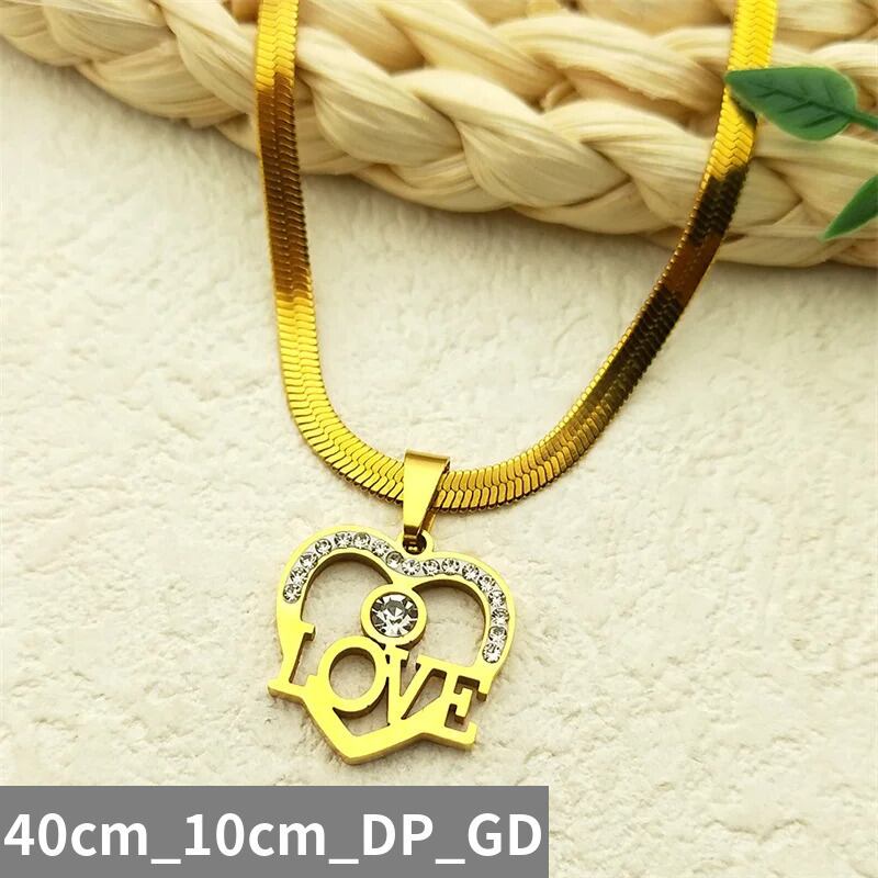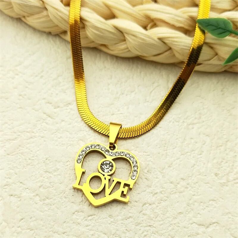 ビンテージ クリスタル Love ハート チョーカー ペンダント ネックレス レディース ステンレス スチール ゴールド プレート ラインストーン ジュエリー
