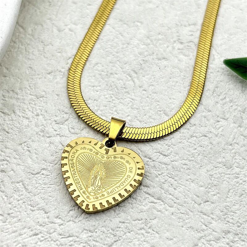 カトリック バージン メアリー イエス Love ハート ネックレス レディース メンズ ステンレス スチール ゴールド カラー 刃 ブレード チェーン お守り ジュエリー パーティ ギフト