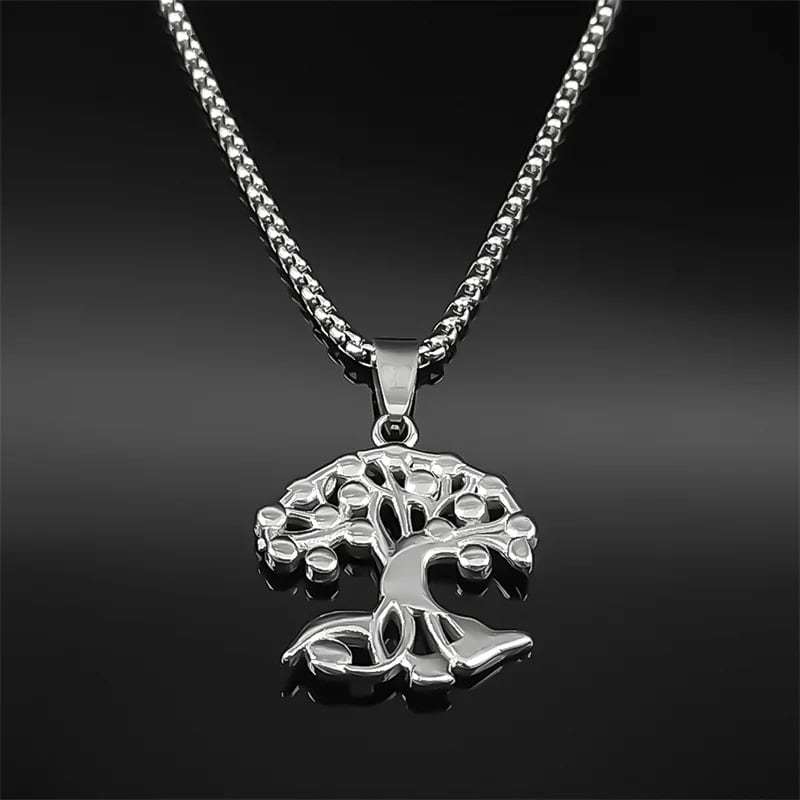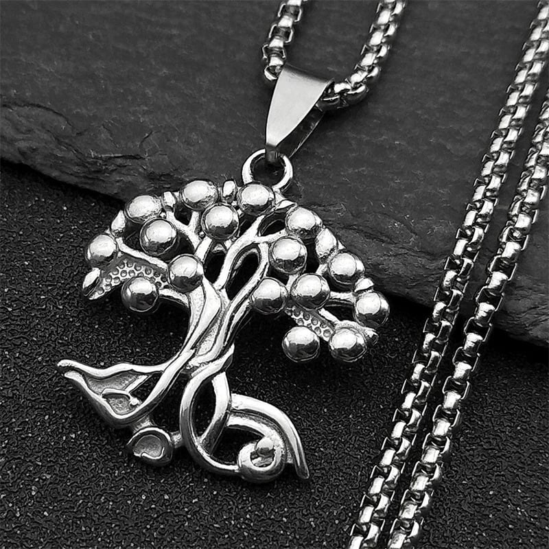 ビンテージ 木 ツリー 木の葉 リーフ 植物 プラント ライフ ペンダント ネックレス メンズ レディース ステンレス スチール シルバー カラー 透かし お守り ジュエリー パーティ ギフト
