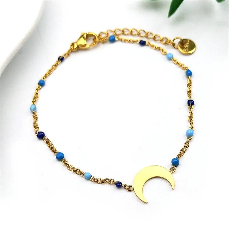 フレッシュ カラー 細い リンク チェーン ファッション 三日月 月 ムーン ステンレス スチール ブレスレット レディース ラッキー お守り バングル パーティ ジュエリー ギフト
