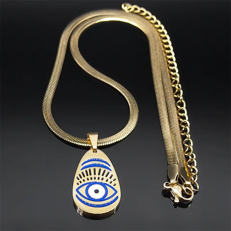 ビンテージ 悪 エビル 目 アイズ 水 ドロップ ペンダント ネックレス チョーカー レディース ステンレス スチール ゴールド カラー ジュエリー ギフト N467S
