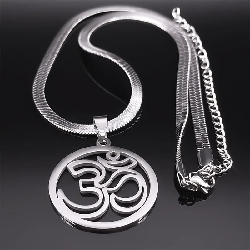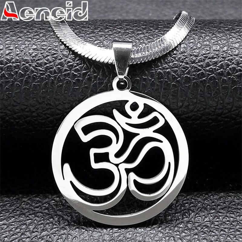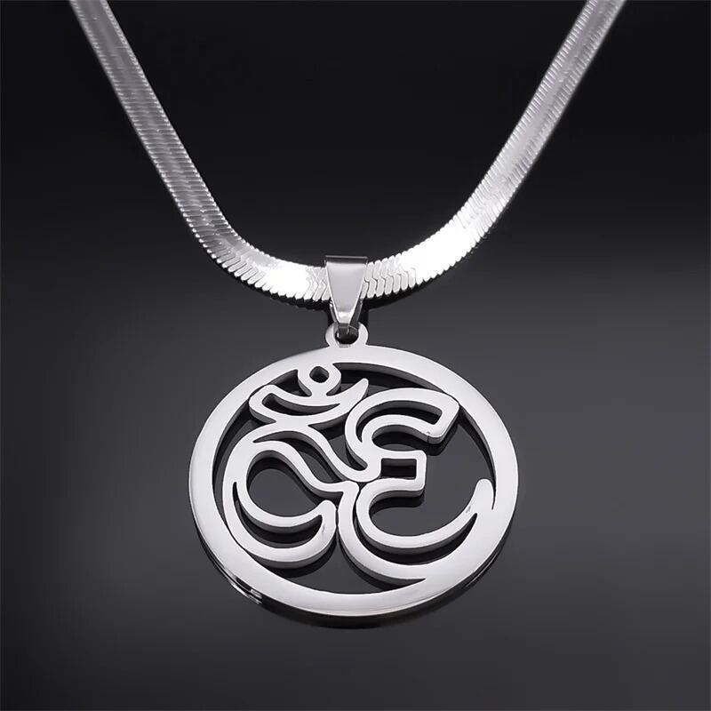 OM ヒンドゥー ヒンズー ペンダント ネックレス レディース メンズ ステンレス スチール ラウンド 透かし チョーカー ジュエリー N