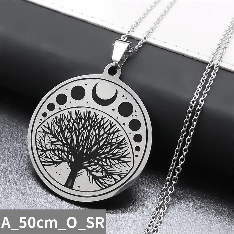 木 ツリー 木の葉 リーフ 植物 プラント ライフ 魔術 ウィッチクラフト 月 ムーン フェーズ ネックレス レディース ステンレス スチール ジュエリー ギフト ビジュー エイジャー N7581S