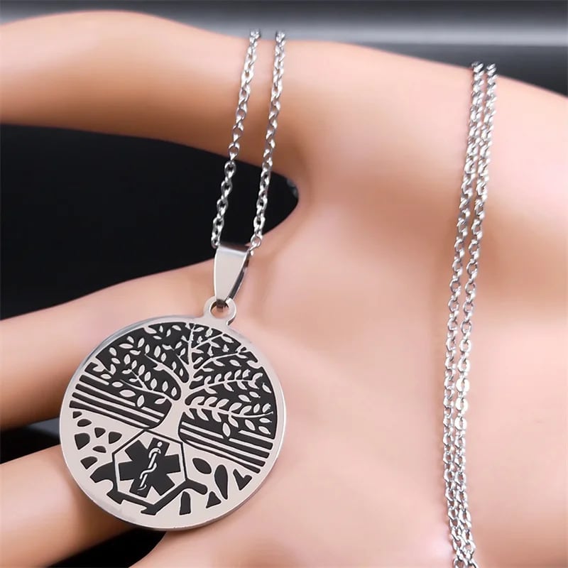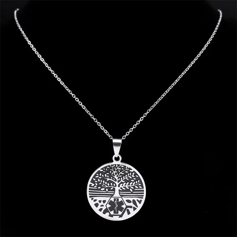 木 ツリー 木の葉 リーフ 植物 プラント ライフ 緊急 エマージェンシー メディカル テクニシャン 救急救命士 ネックレス レディース メンズ ステンレス スチール シルバー カラー ジュエリー NXXXXS