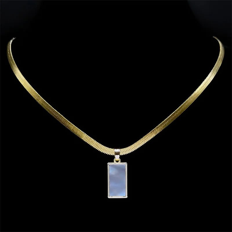 ビンテージ 長方形 四角 スクエア アワビ 動物 アニマル シェル 貝殻 ペンダント ネックレス レディース ガール ステンレス スチール コッパー カッパー 鎖骨 ジュエリー ギフト NFF27-5S