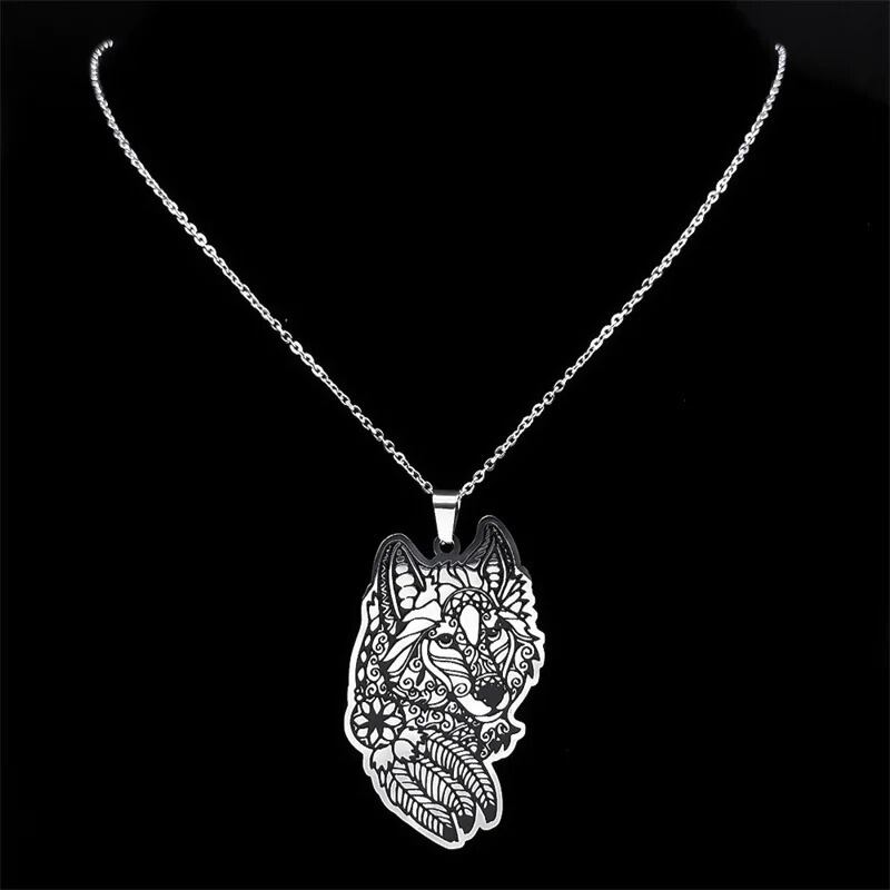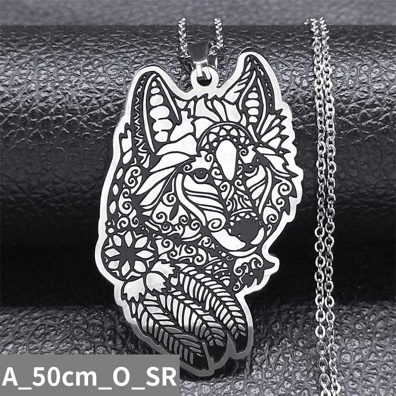 ペンダント ネックレス 動物 アニマル ステンレス オオカミ シルバー キャッチ 狼 レディース メンズ ボヘミア ウルフ