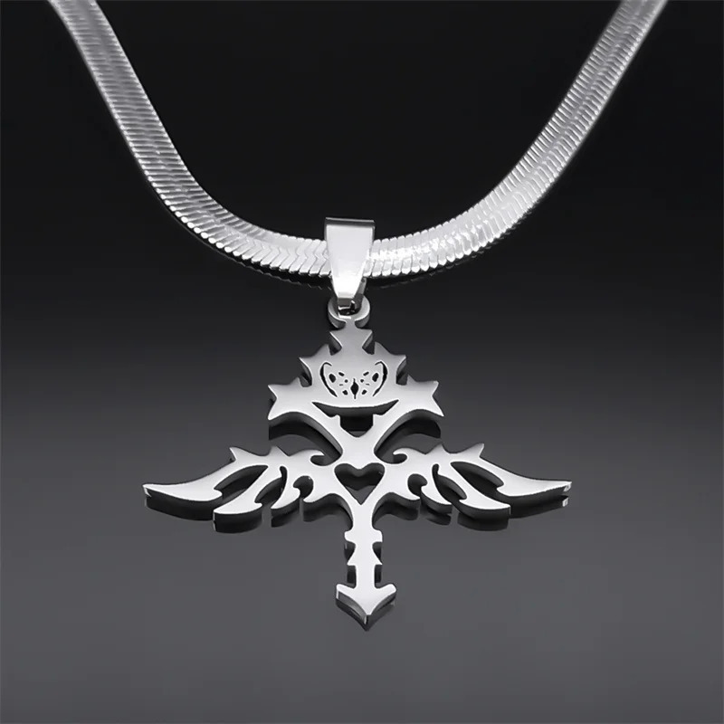 ビンテージ 悪魔 デーモン デビル 羽根 ウィング クロス チョーカー ネックレス レディース メンズ ステンレス スチール シルバー カラー 鎖骨 チェーン ジュエリー N